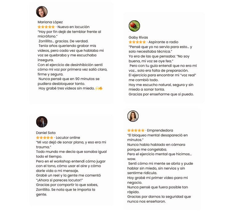 "Al terminar estas 4 sesiones, no solo sabrás exactamente qué decir y cómo decirlo, sino que tendrás la certeza absoluta de que tu voz es la herramienta más rentable de tu negocio."